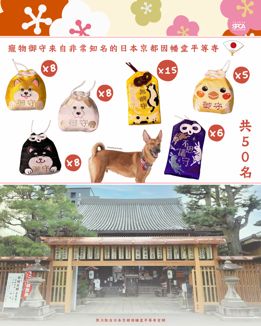 上網一查「寵物御守」,跑出來的第一間,就是京都的因幡堂平等寺。因幡堂平等寺近年推出許多為寵物祈求的御守,尤其寵物的身體健康與抗癌,聞名海內外,許多人都會特別前往為寵物祈福與參拜。協會特別從京都帶回御守們,希望將這份充滿愛的祝福帶給大家。