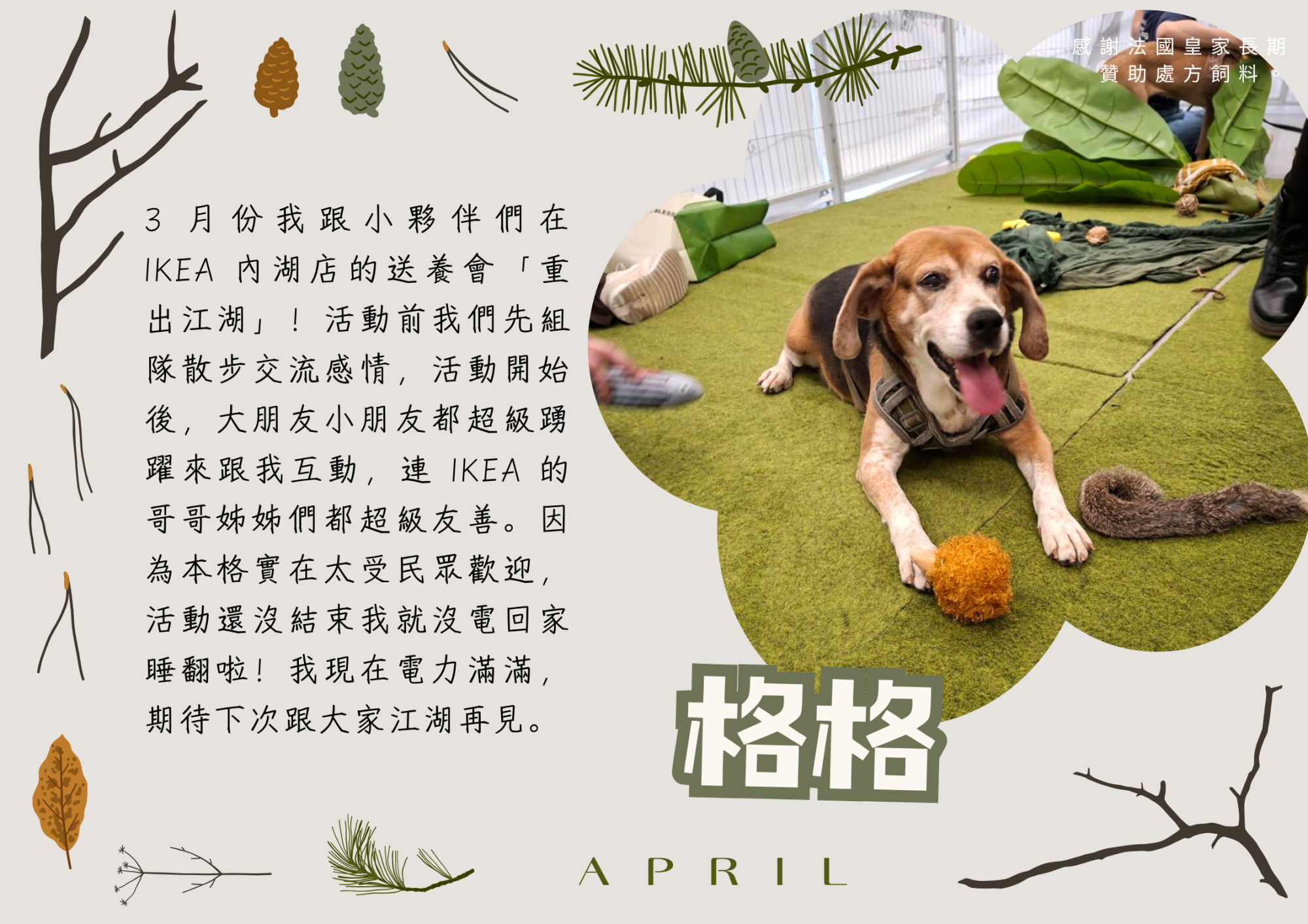 謝謝3月的愛心助養,幫助等家的動物有更好的生活💙